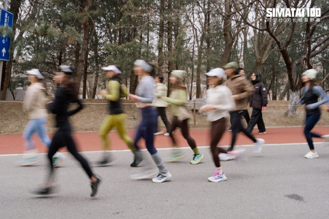 参与者聚集在奥森清泉,在轻松愉快的气氛中迎接下午的体验。跑步者在交流和互动中分享自己的跑步经历和对赛事的期待。轻松而充满活力的氛围也让这次推广活动更加温暖了跑步者的社区。14:30,跑步的朋友们开始了7公里的热身赛。沿途草色遥远,近而无相,微风带来早春气息。轻松的热身跑步节奏不仅让参与者体验到了跑步的乐趣,也提前感受到了司马台100长城越野赛倡导的“越野挑战、亲近自然、守护长城”的理念。通过跑步,每个人都可以用身体测量自己的活力,用步伐感受户外运动的自由和愉悦。